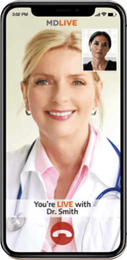 MDLIVE does not guarantee patients will receive a prescription. Medical consultations are available by interactive audio on-demand 24/7/365 or by video 7 days per week from 7am EST to 9pm EST or by scheduled availability. Behavioral consultations are by scheduled availability. Healthcare professionals using the platform have the right to deny care if based on professional judgment a case is inappropriate for telehealth or for misuse of services. MDLIVE and the MDLIVE logo are registered trademarks of MDLIVE, Inc. and may not be used without written permission. For complete terms of use visit https://welcome.mdlive.com/terms-of-use/.